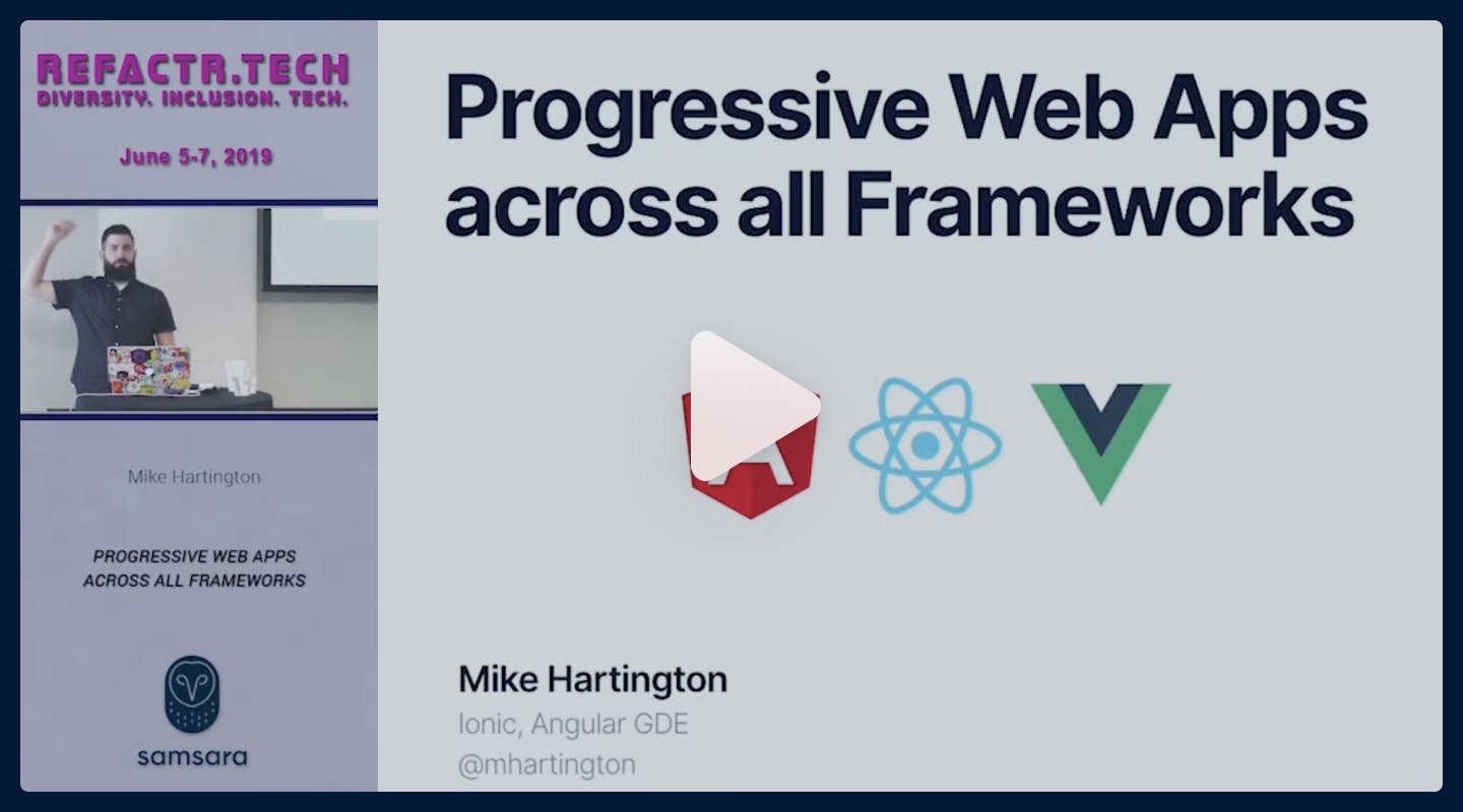 Mike Hartington, Developer Advocate at Ionic, gives a talk on PWAs at the Refactr2019 conference.